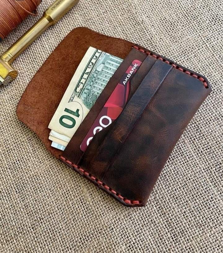 حافظة كروت جلد طبيعي مصنوعة يدوياً من جلد أصلي ، تجمع بين الأناقة والعملية. تصميم صغير جداً يناسب جميع احتياجاتك اليومية، مع حزام قفل يحافظ على بطاقاتك بأمان. مثالية للجيب أو الحقيبة الصغيرة، فهي الخيار الأمثل لعشاق التنظيم!