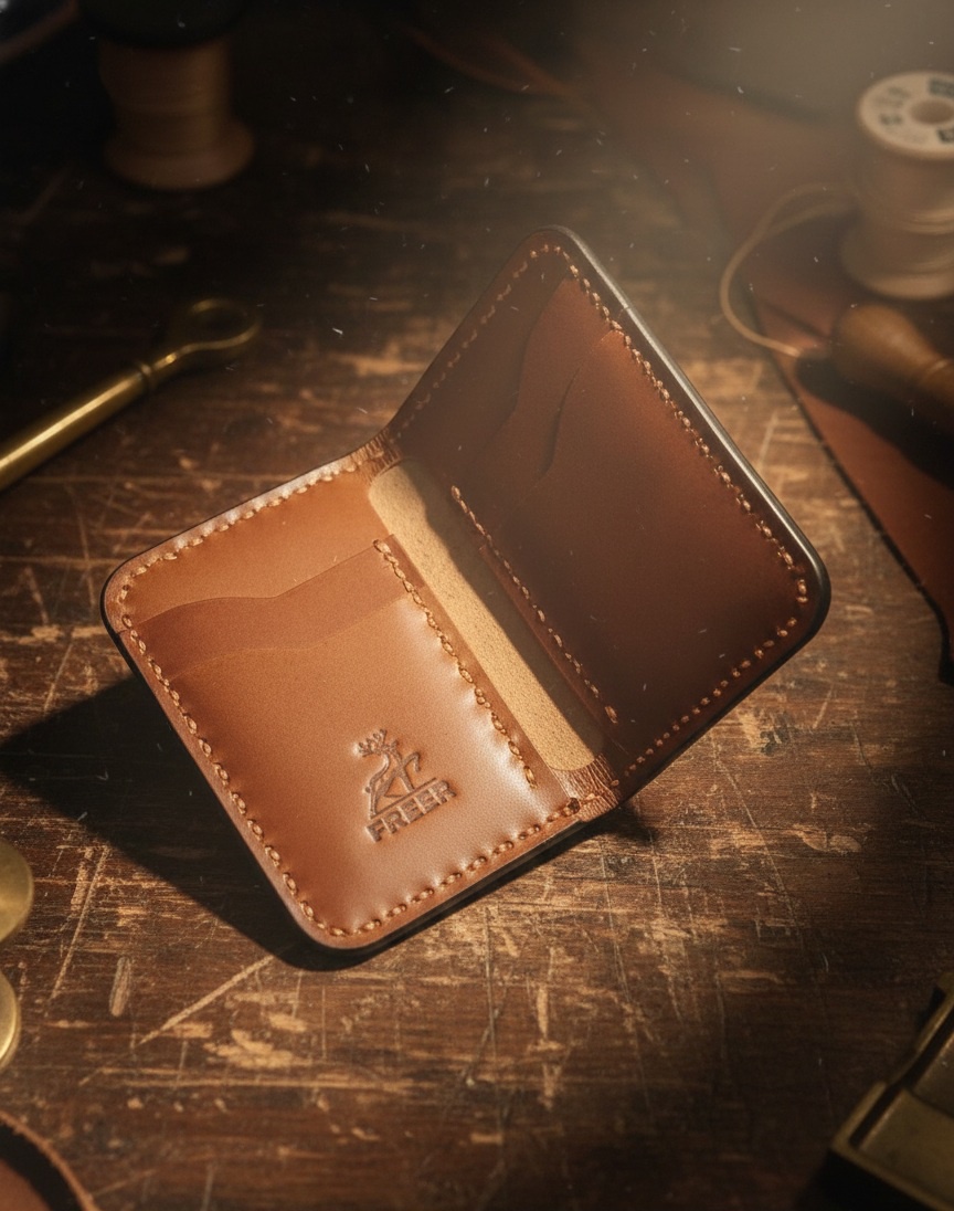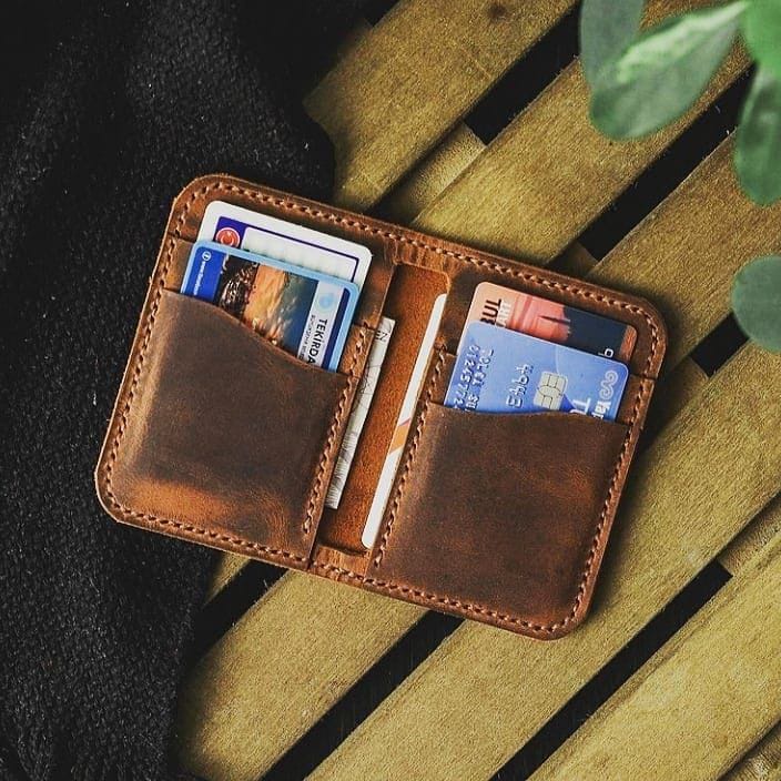 المحفظة الذكية لمظهرك اليومي. جلد طبيعي مشحم وأصلي، مصنوعة يدوياً. تنظيم مُركز: 4 جيوب كروت + جيبين للنقود المطوية. القوة في البساطة والحجم الصغير.