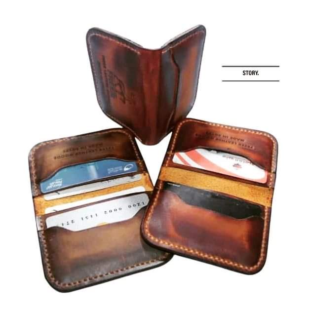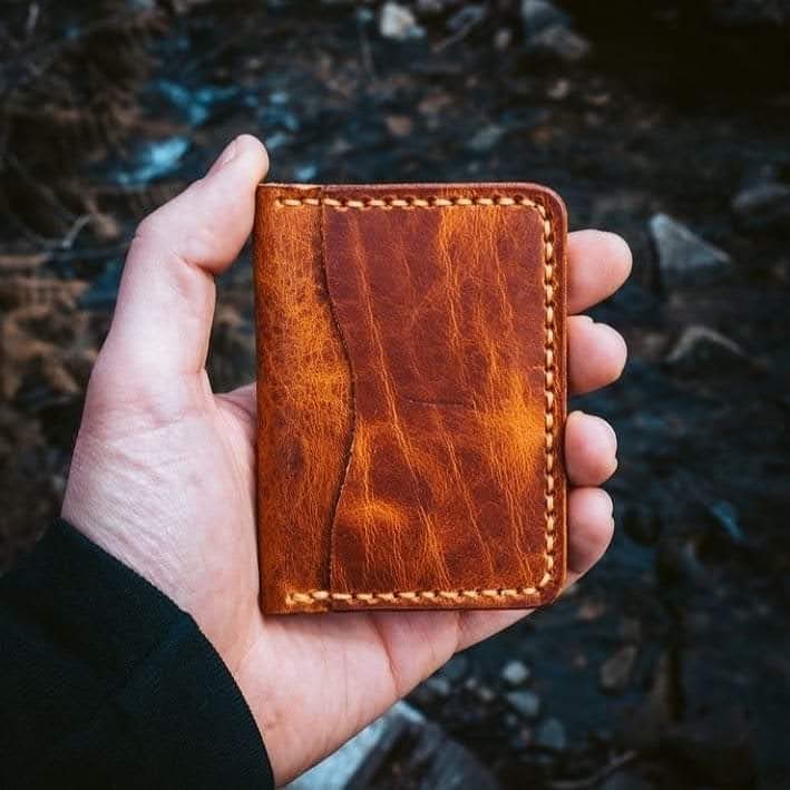 حافظة الكروت الفاخرة. مصنوعة يدوياً من الجلد الطبيعي الأصيل المشحم. تصميم مدمج وأنيق يناسب ضرورياتك. لمسة الفخامة التي ترافقك يومياً.