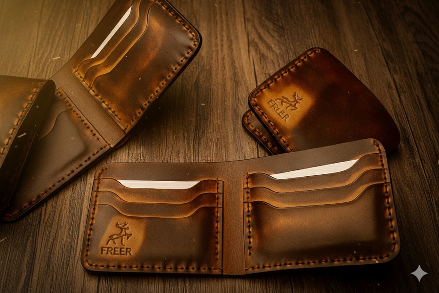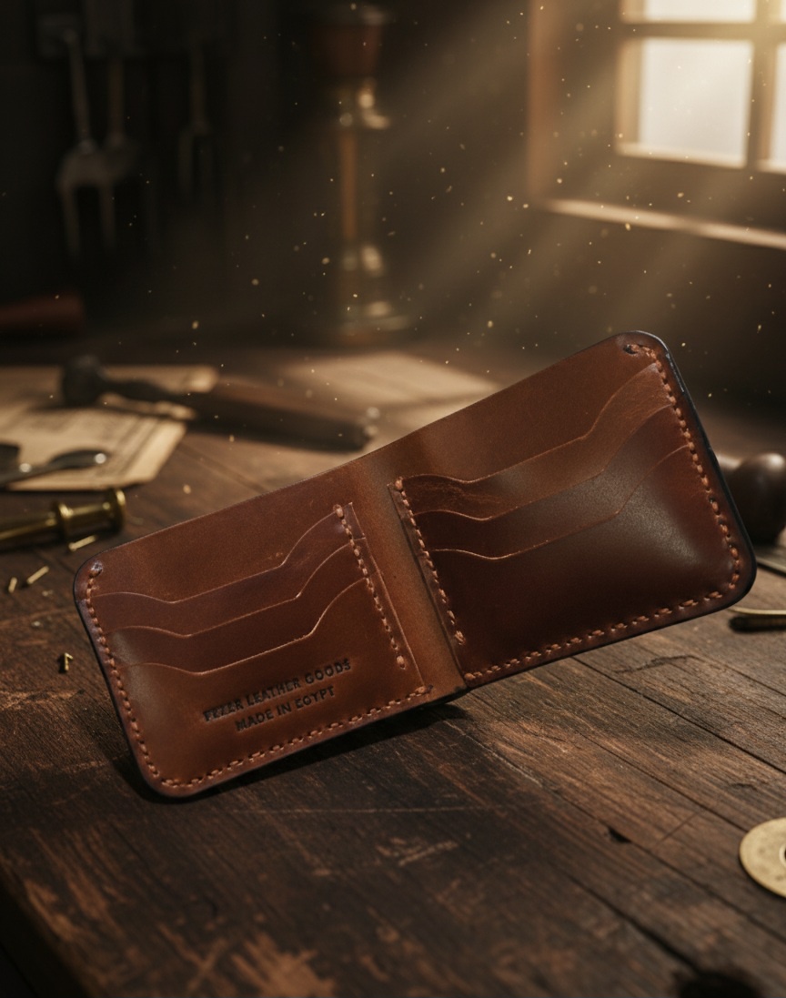 جلد أصيل مشحم، مُتقن يدوياً. محفظة 8×12سم (مغلقة) بتنظيم احترافي: 6 كروت وجيب للنقود المفرودة. استثمارك في الأناقة والجودة الدائمة.